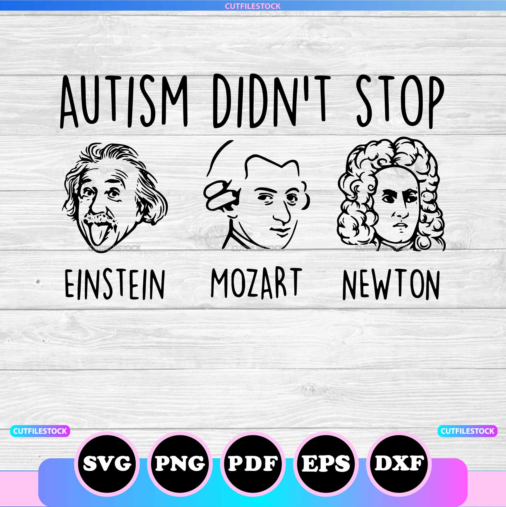 Autism Einstein Mozart Newton Svg, Png, Pdf, Dxf, Eps, Autism Svg