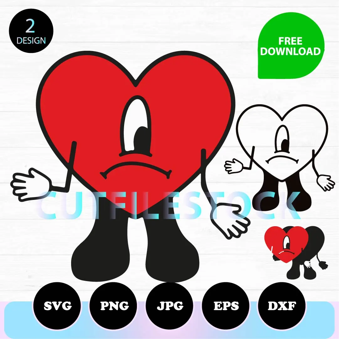 Free Download Bad Bunny Heart SVG PNG DXF JPEG EPS Cut Files For Cricut, Baby Benito Free Svg Files, make your own decals, T-shirts. Cricut, Silhouette Studio, Make The Cut, and most any other vector software and vinyl cutter..