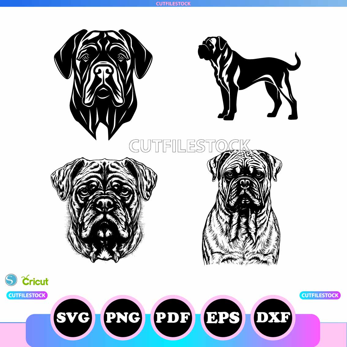 Bullmastiff Svg Bundle SVG, PNG, EPS, Cricut, Dog Svg Bundle