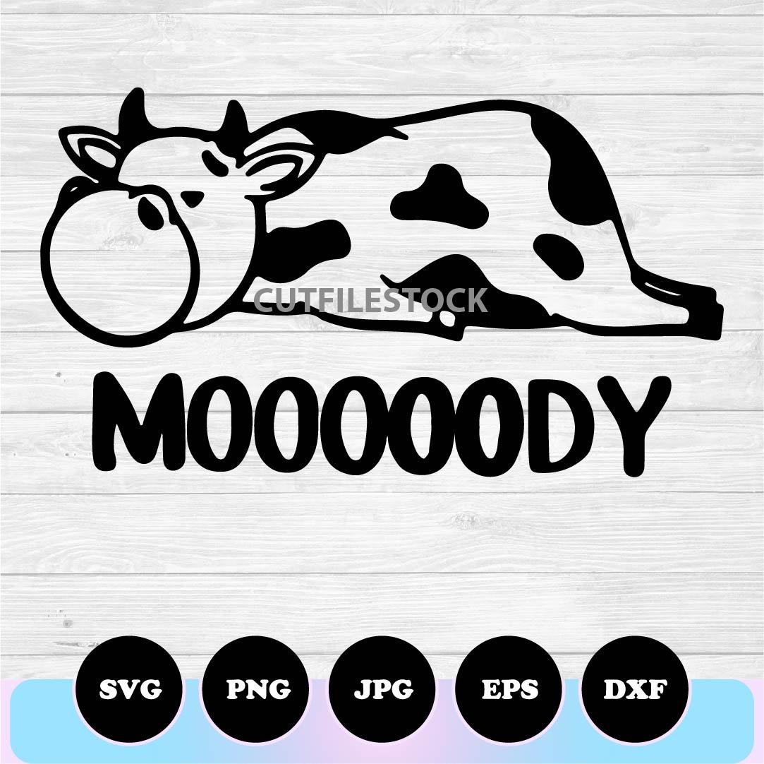 Moody Svg Funny Lazy Cow Svg Png, Heifer, Clipart, Digital, Silhouette, Cricut