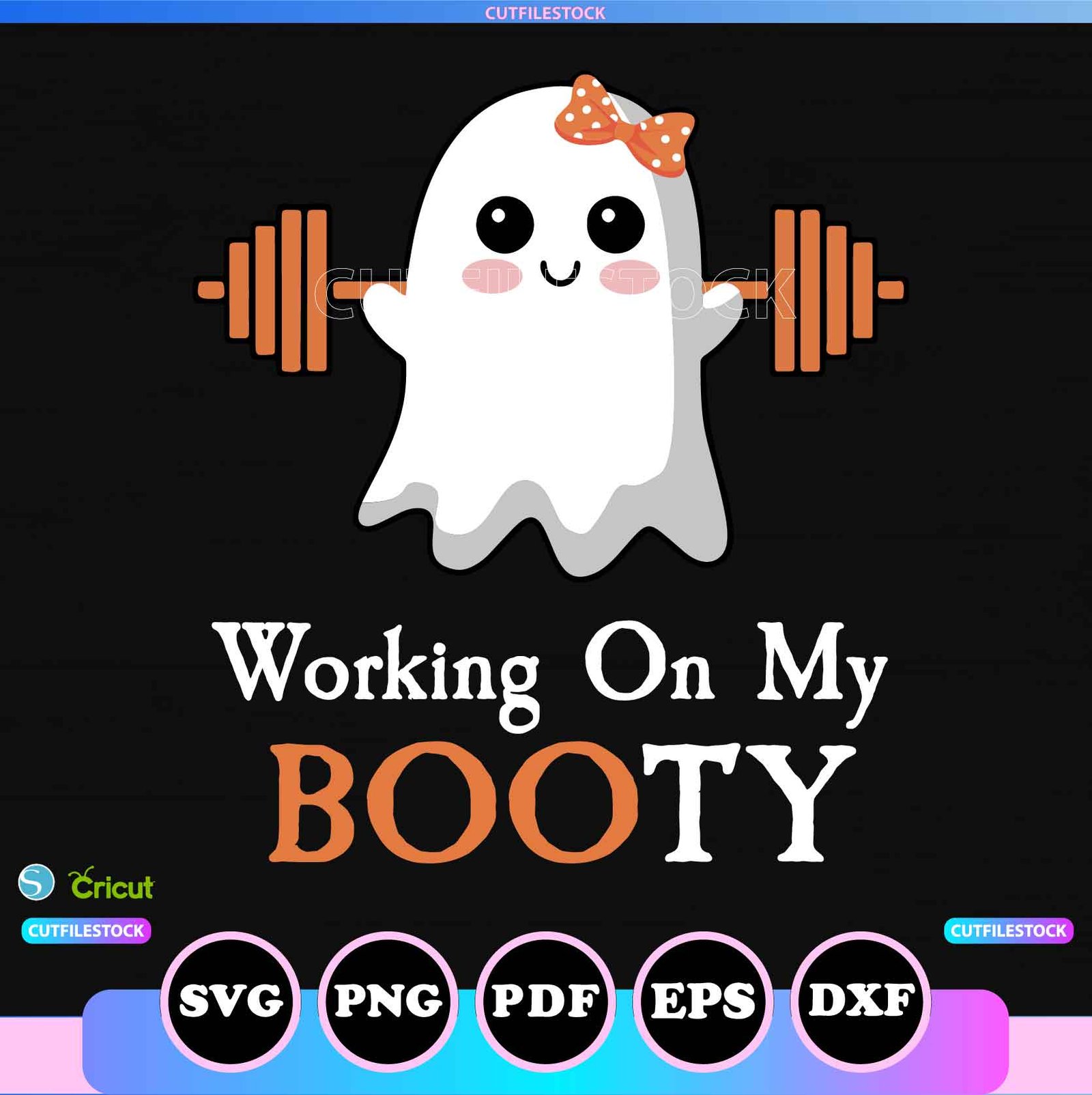 Digital Download Working On My Booty Svg Png Eps Pdf Dxf, Cut Files, Cricut, Silhouette, Art, Clipart, Vector, Cute Ghost Gym Svg, Spooky Girl Ghost Svg, Ghost Gym Svg Png, Halloween Gym Svg, Ghost Gym Working On My Booty